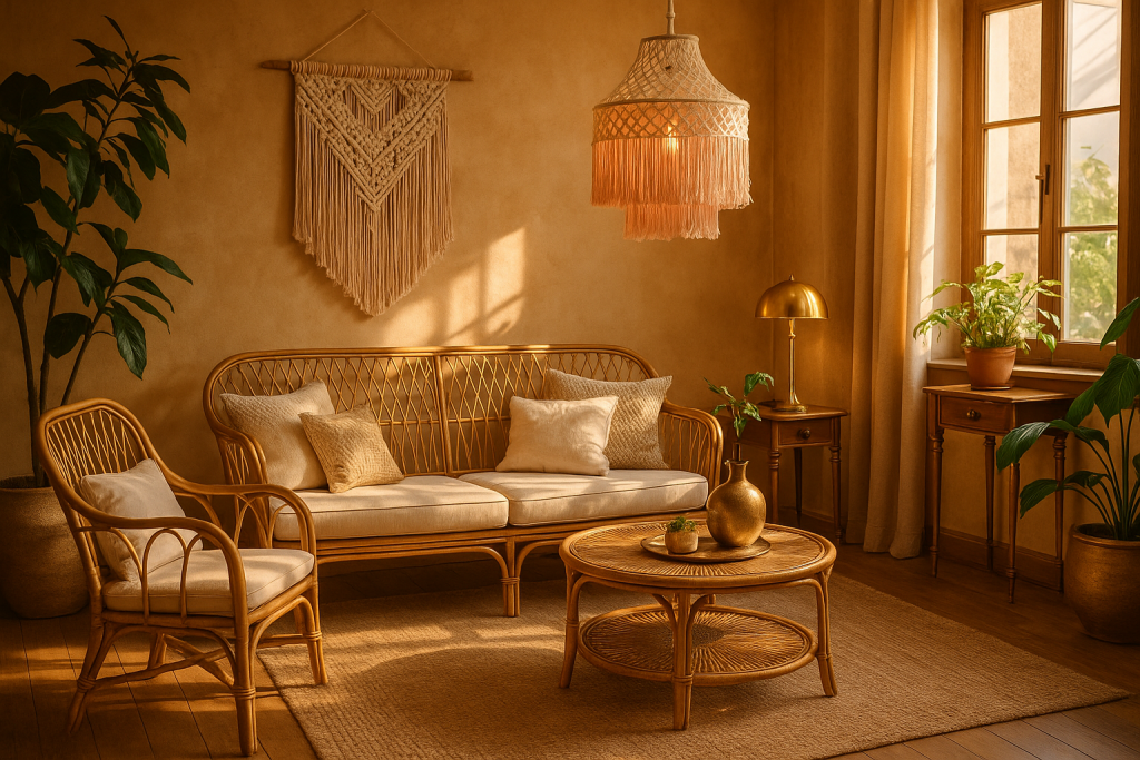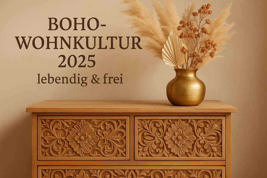 Boho-Stil: Für mich steht der Boho-Stil (Bohemian) für lebendige Farben, handwerkliche Details und eine unkonventionelle, entspannte Atmosphäre. Typisch sind warme Naturtöne (Braun, Beige, Weiß) und verspielte Akzente –